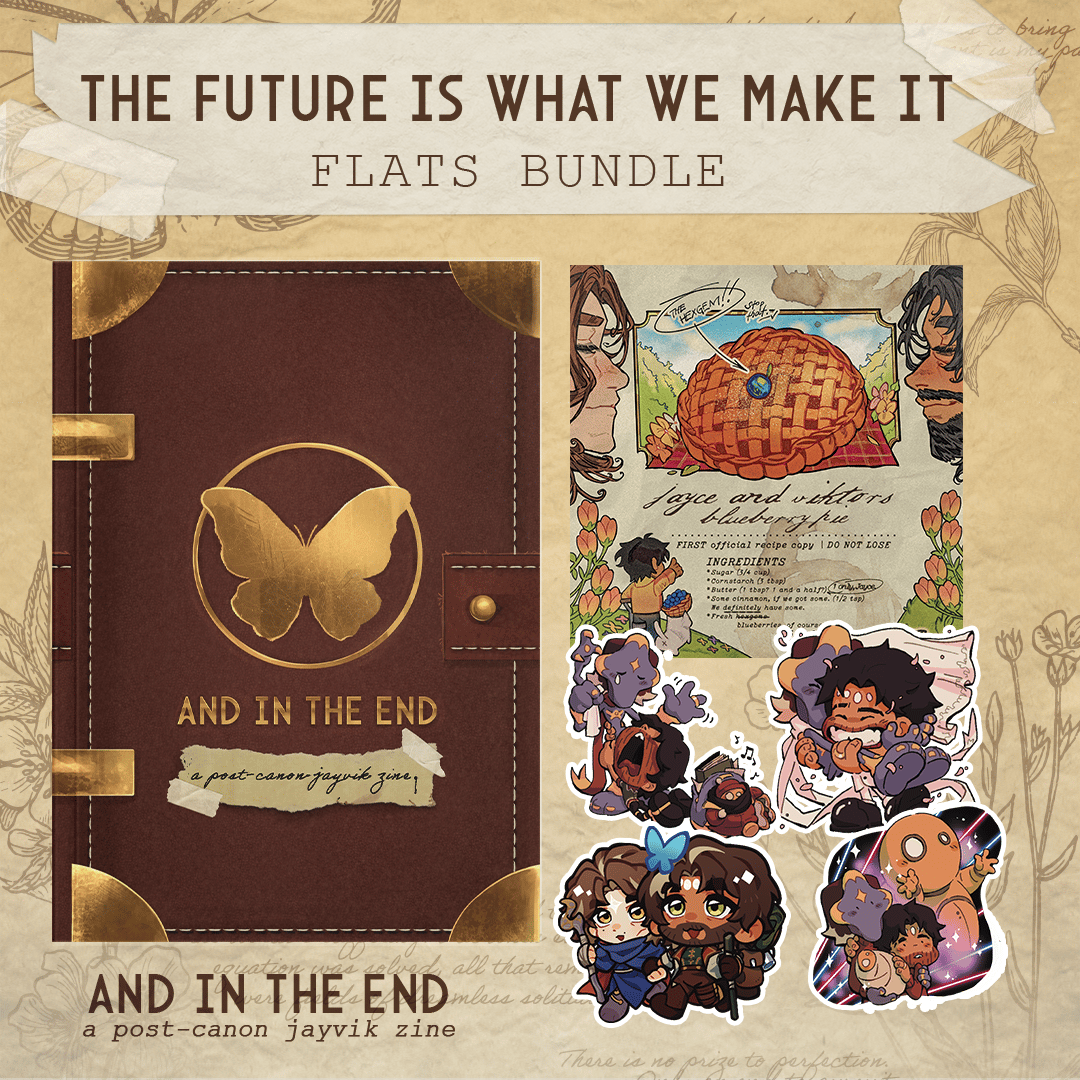 And In the End is a SFW, perfect bound, A5 book containing over 50+ pages of writing and artwork. The zine is for charity, therefore all remaining proceeds after production and shipping will be going to Palestine Children's Relief Fund (PCRF).