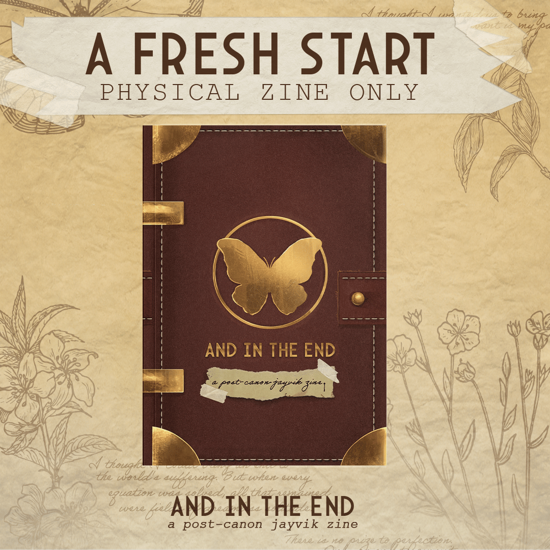 And In the End is a SFW, perfect bound, A5 book containing over 50+ pages of writing and artwork. The zine is for charity, therefore all remaining proceeds after production and shipping will be going to Palestine Children's Relief Fund (PCRF).